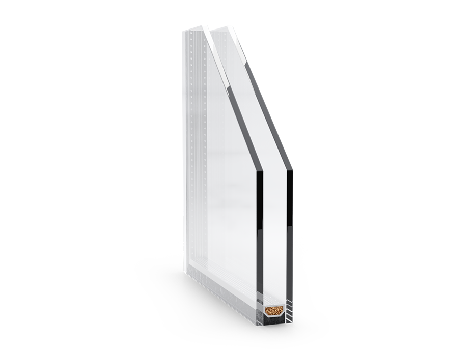 Eine Doppelverglasung, die aus zwei Glasscheiben besteht. Dieser Standard gilt für einfache Fenster- und Türsysteme. Das Basispaket zeichnet sich durch die Stärke von 24 mm aus, in dem die Komponenten eine Stärke von: 4 mm (Glas) – 16 mm (Abstandshalter) – 4 mm (Glas) haben, wodurch das so genannte 4/16/4-Paket entsteht. In dem durch den Abstandshalter gebildeten Scheibenzwischenraum befindet sich hauptsächlich Argon (90 %), was den Wärmedurchgangskoeffizienten Ug weiter verringert.